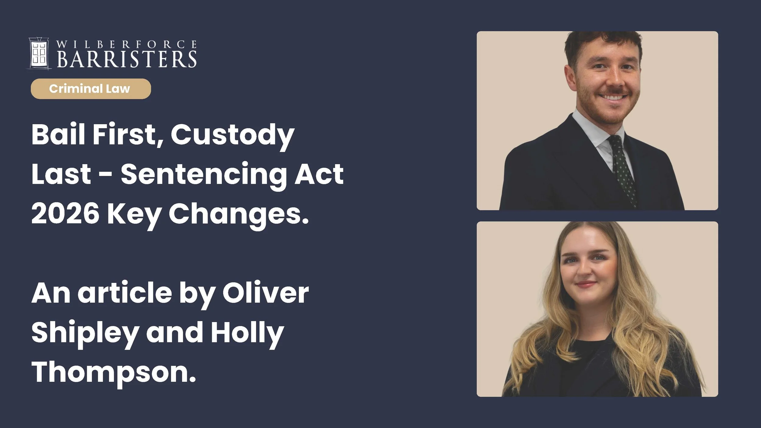 Bail First, Custody Last - Sentencing Act 2026 Key Changes. An article by Oliver Shipley and Holly Thompson.