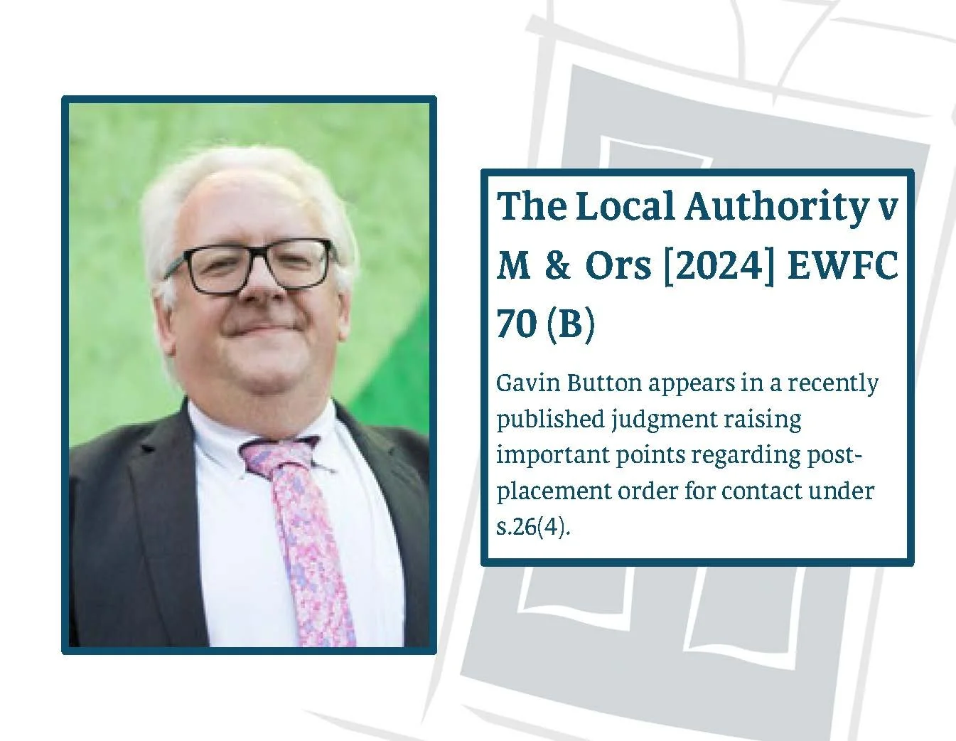 Gavin Button was instructed by Brooke Williams on behalf of mother in proceedings brought by the Local Authority.